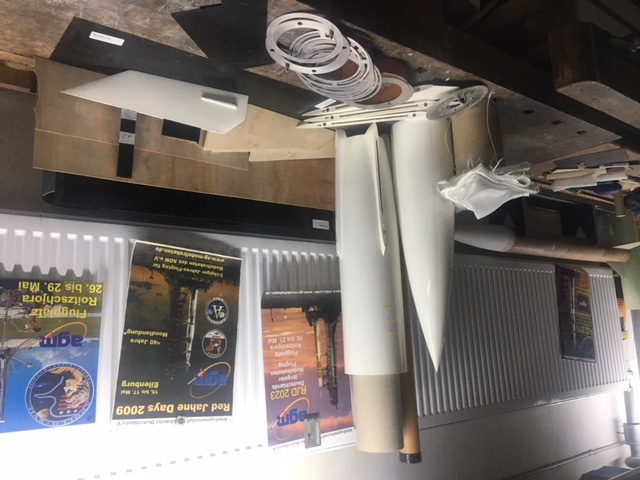 Und weiter geht es. Spitze und Booster in Schalenbau wies in xyer Glasfaser, dabei recht schwabbelig und nicht so stabil. Daher hab ich denen 225er Glasfaserstreifen genehmigt. Noch nicht das Gelbe vom Ei, aber deutlich besser. Gut es kommen noch ALuspanten und ein 5" Innenrohr hinein. Der Zwischenraum wird komplett ausgeschäumt.