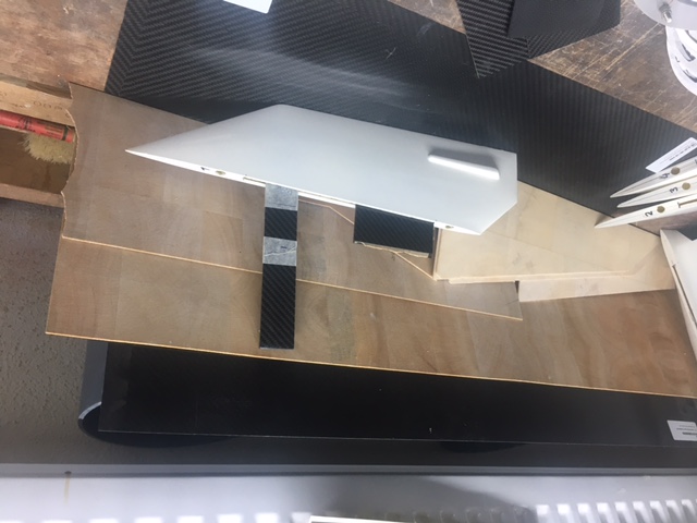 Ich hatte Glück, habe noch einiges an 2mm Stiirnholzbalsa gefunden zweck TTW-Flossenbau als Sandwich: Balsa/0,5mmCFK.Platten. Die Flossen und der Booster waren bereits geschlitzt. Also TTW in 3mm Sandwich mit CFK Stab als Verstärkung noch. Das Material  Mit Reststücken zur Probe mal Der Aufbau vor der Presse in der Presse fertig