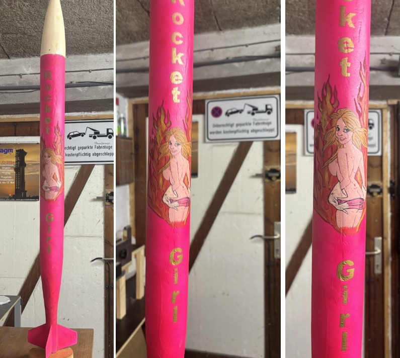 Hat vielleicht jemand von Euch Rocket Verrückten Interesse einen feurigen Flirt mit dieser Dame einzugehen? Ihre Maße sind 90 / 60 / 24. Ein 24ger Motor ist also Voraussetzung. In der Spitze ist sogar passender Raum für einen Simply-Altimax vorhanden. Es kommen da aber nur erfahrene Kandidaten in Frage. Ich würde mich freuen, zu dem Verlobungsflugtag eingeladen zu werden. Wer dann bei Ihr "erfolgreich landen" kann, dem bleibt sie dann auch ein Leben lang verbunden. Grüße, Rolli