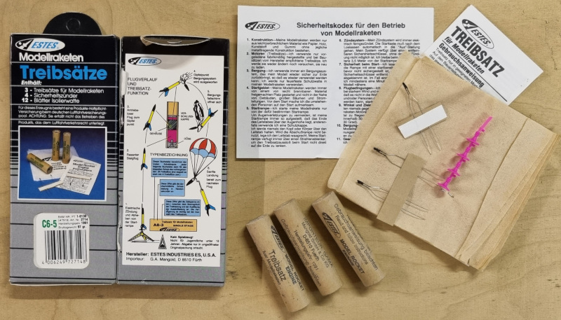 habe aus einer Geschäfts-/Haushaltsauflösung nicht ganz freiwillig einen Stall voll Estes C6-5 mit Baujahr 1991 bekommen.