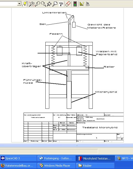 Eine Küchenwaage nit vertikaler Skaler (Zeiger) dürfte für einen Schub von 1 bis 3 kg aber noch besser sein. Ich habe gestern mal eine alte Küchenwaage von Mutti instand gesetzt. Die macht bei 3 kg einen Weg von 360 Grad. Wenn man nun die Halterung für den MH senkrecht oben drauf montiert, so dass der Abgasstrahl neben der Waage her pfeifen kann, hat man bestimmt eine brauchbare Genauigkeit und einen riesigen Anzeigebereich. Mann muss nur sicherstellen, das man die Sache größer vorbeschweht als sich Schub entwickeln kann sonst hebt die Geschicht ab.