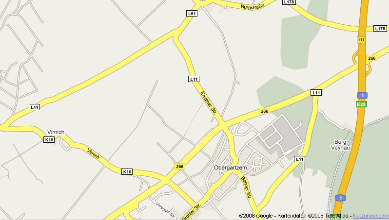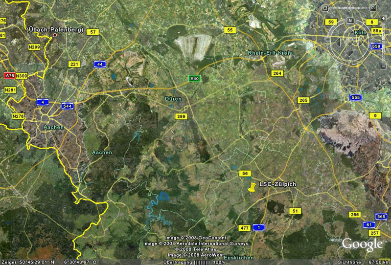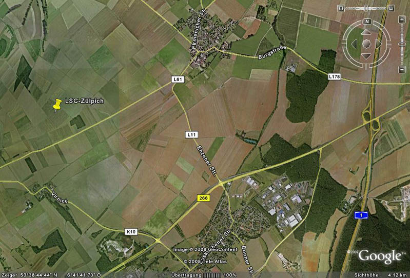 ich habe mal versucht eine Wegbeschreibung zu erstellen. War vor kurzem vor Ort gewesen und habe die Tücken der Anfahrt hoffentlich entfernt. 1. Der Platz liegt sehr nah an der A1. Es macht also für alle Sinn per A1 anzureisen. 2. Man verläst die A1 an der Abfahrt 111 "Wißkirchen" in Richtung Westen (Obergartzem). Die von Köln kommen biegen nach der Abfahrt rechts ab. 3. Man folgt der Straße B266 für ca. 1,7km bis die erste große Kreuzung mit Ampel kommt. Dort biegt man rechts ab in die Enzener Str. in Richtung Enzen. 4. Diese Straße ist recht schmal und hat keine Mittellinie. Also Vorsicht. Der Straße folgt man bis zur nächsten Kreuzung. Die Kreuzung ist mit Kreuz ( so ein Holzkreuz wo Jesus dran genagelt ist) und einem Baum. Dort biegt man wirklich scharf links ab. Ich mußte mit meinem Volvo schon etwas kurven .5. Ihr sied quasi auf der Zielgeraden. Diese Straße fahrt ihr für ca. 900m. Es kommt dann ein sehr kleiner Schotterweg auf der rechten Seite. Der Weg ist mit kleinen Büschen (<2m) ausgestattet. Den kann man schnell verpassen. Also vorsicht. 6. Ihr folgt dem Schotterweg. Der macht eine Linkskurve und führt an dem kleinen Wäldchen vorbei. Von der Straße wo der Weg abgeht kann man den Platz schon erkennen. Gruß Neil Die Erde ist eine Scheibe. Egal in welche Richtung sich die Menschheit bewegt, sie geht immer auf einen Abgrund zu. |