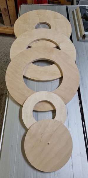 Hallo zusammen, Am Wochenende hab ich mal die ganzen Spanden gefräst. Hab spontan entschieden mich an der Bumblebee von PML zu orientieren und geh vom 75 mm MMT auf halber Höhe innerhalb der Rakete auf das 6 inch Innenrohr über. Spart Gewicht und auch ein paar Zentimeter teures Phenolic Tube.  Die Railbuttons sind auch schon mal gedruckt... Viele Grüße, Matthias