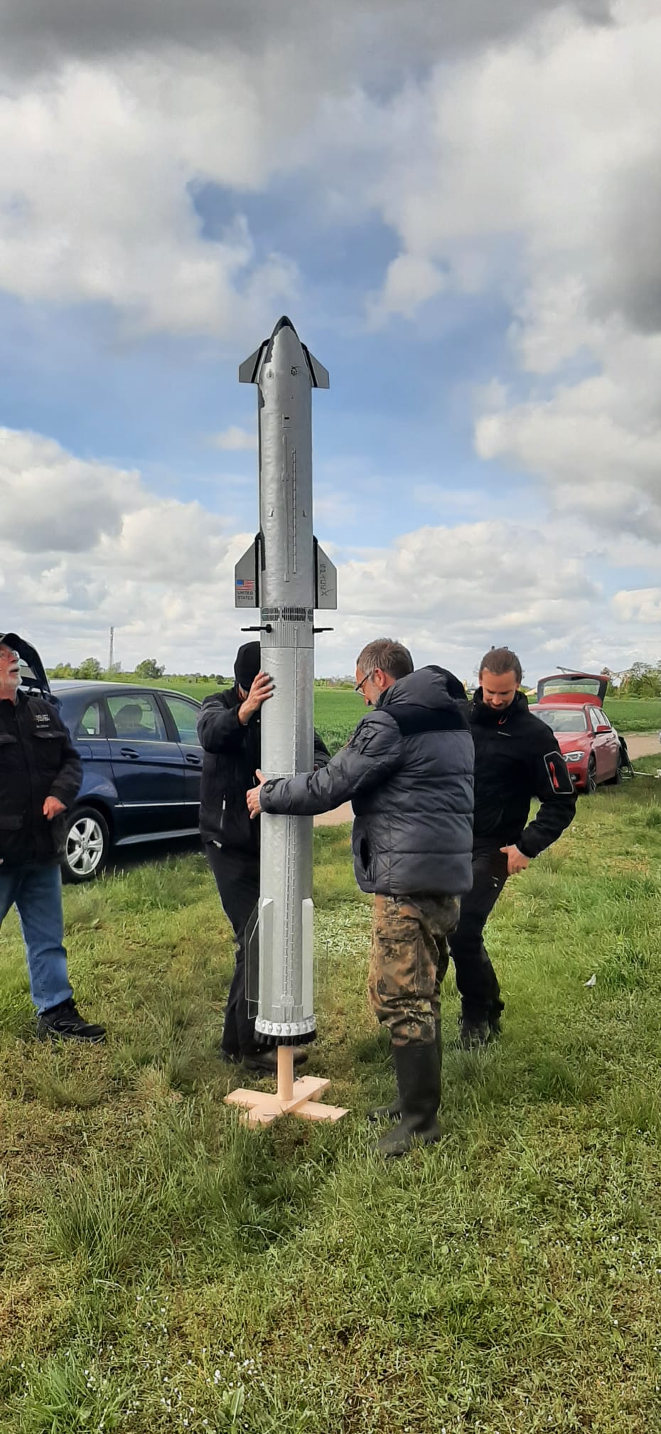 Bei unserem heutigen Treffen auf der Roten Jahne haben wir mal gemeinsam Rollis Starship aufgebaut zuerst mal alle Teile zusammen gesteckt, Torsten hat noch mal den Schwerpunkt überprüft, Martin hat nochmal schnell einen "Schwingtest" gemacht.... dann noch mal alle Daten Überprüft, dann wurde das Starship endlich komplett aufgerichtet,