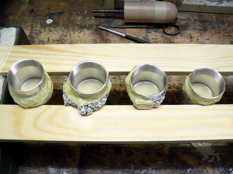 Nach dem aushärten konnte man die Spitzen herausnehmen. Kurz abgeschliffen, innen in der Hülse etwas aufgerauht, und mit Epoxyd festgeklebt.