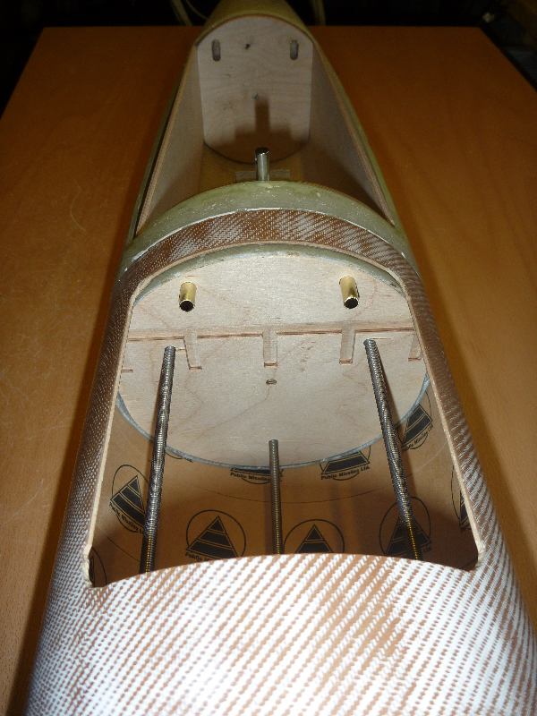 Ich arbeite mich so langsam von Oben nach Unten. Die Gewindestangen sollen den Eröffnungsschock des Hauptschirms in den Rest der Konstruktion einleiten: Die Messingröhrchen dienen später als Führung der Haltebolzen der Hauptfallschirm-Klappe: Viele Grüße Dennis