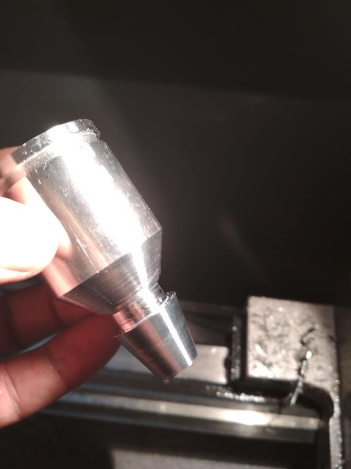 Das erste Teil ist gefertigt, zum testen habe ich mal einen Ablaufstutzen für den Kühlschmierstoff gedreht, ein Ablauf fehlt nämlich in der Wanne: