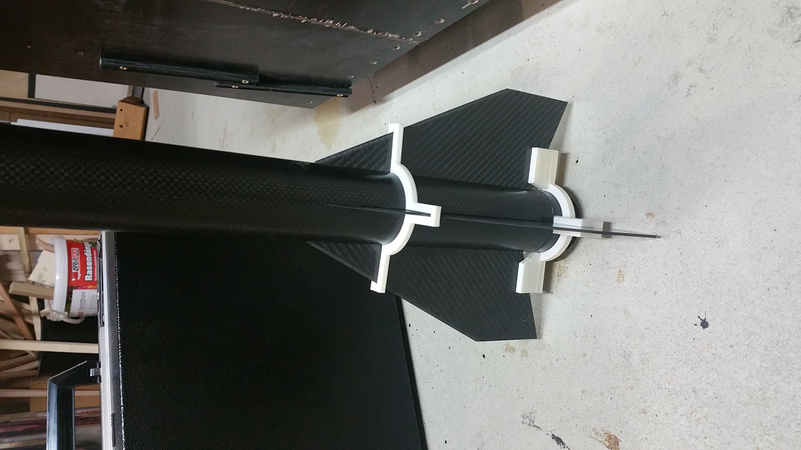 Bei der Vorbereitung für das Finnen einkleben musste ich leider feststellen, das dass Bluetube-Rohr an den Slots etwas "aufgequollen" ist und ich das Motorcasing nur noch schwer einschieben kann. Da ich zum Kleben ein Backpapier um das Casing wickeln wollte und das ganze ins Motorrohr passen muss werde ich das Rohr innen etwas ausschleifen.
