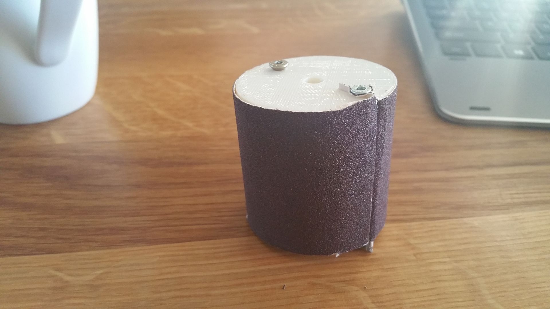 Um das Ganze nicht schwieriger als nötig zu gestalten habe ich schnell einen 50mm Zylinderschleifkopf gedruckt.