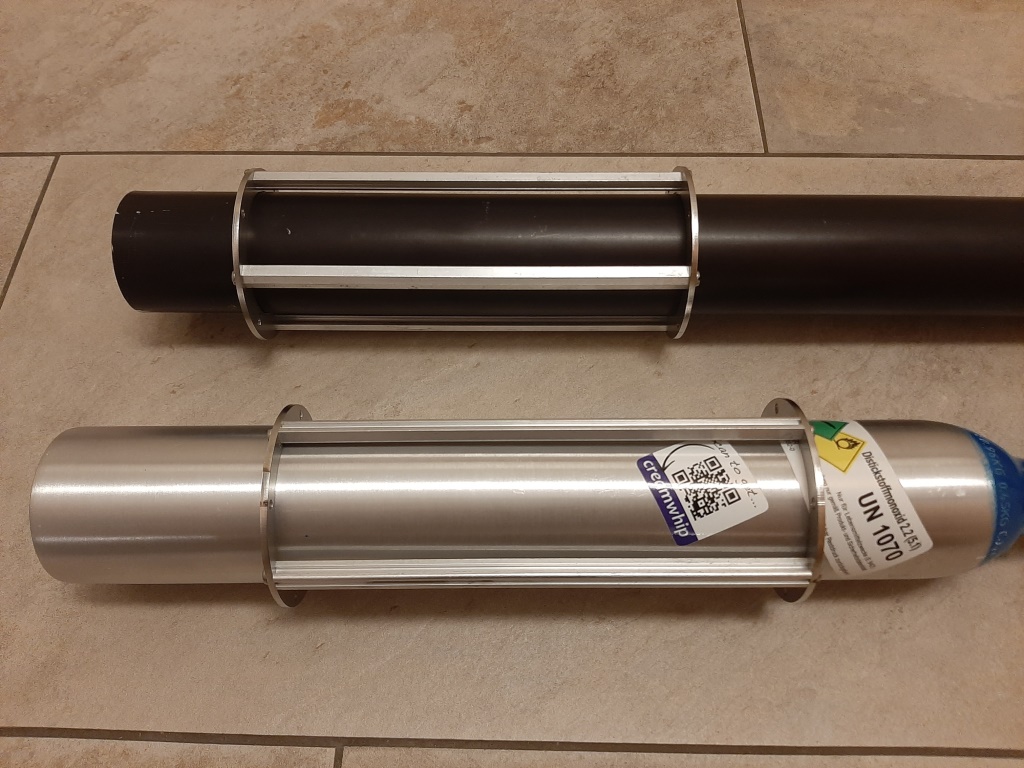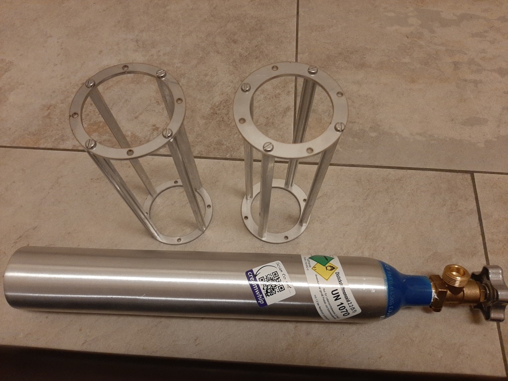 Da unser bisheriger N2O Gas-Händler in diesem Jahr Lieferschwierigkeiten hat, sind wir auf einen neuen Anbieter umgestiegen welcher uns kleinere Flaschen (siehe Foto) aber mit dem gleichen technischen Lachgas bereit stellt.