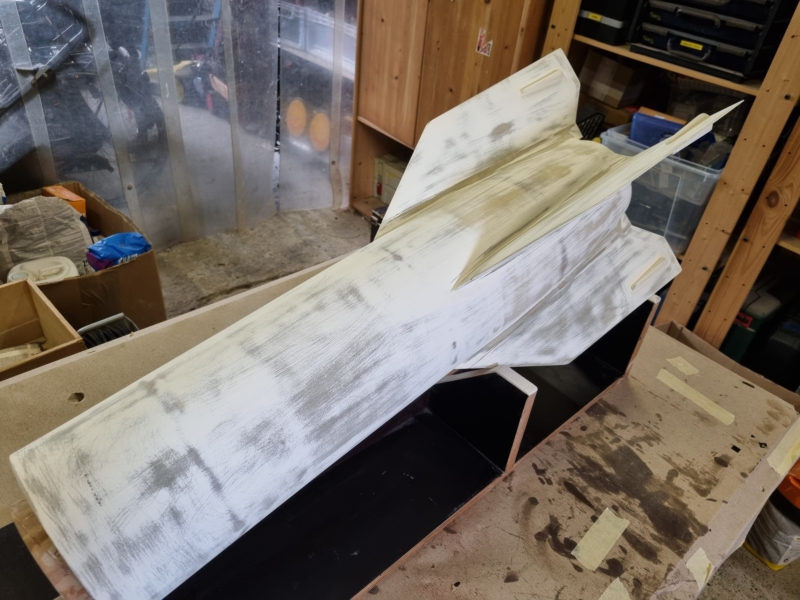 Zwei Raketen mit den Kindern später geht es mit der A4 nun doch langsam weiter...  Den Lack auf dem Unterteil habe ich grob abgetragen und zwei Lagen 163 Gramm GFK Tip-to-Tip spendiert.