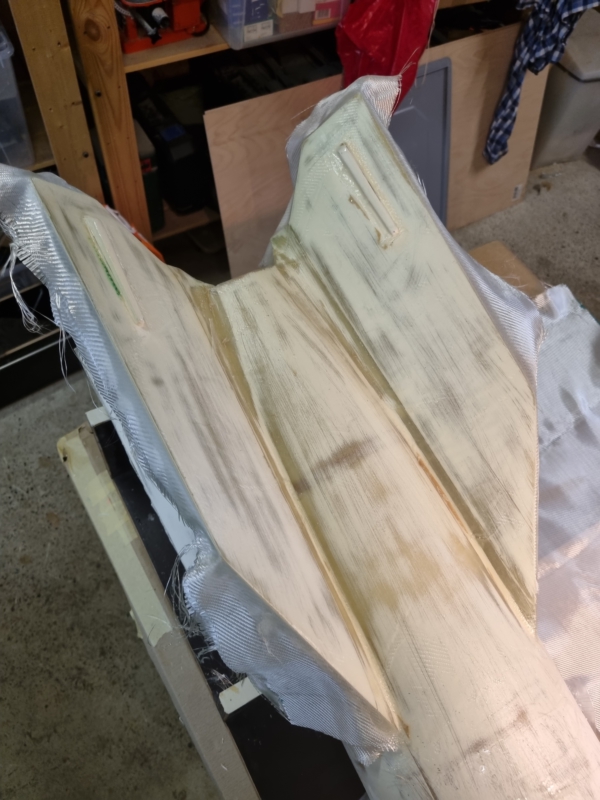 Hab die Flossen zwischenzeitlich angeklebt und bin dabei die GFK-Lagen für Tip-to-Tip vorzubereiten.