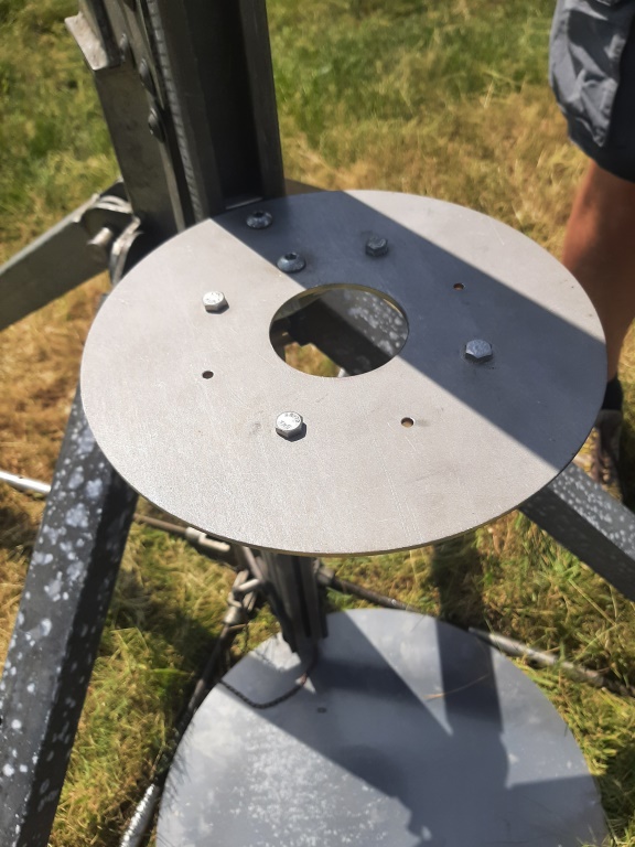 An der Rampe wird ein stabiler V2A "Teller" zur sicheren Abstützung des Modells fest verschraubt...
