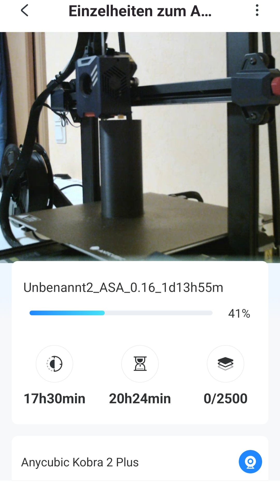 Auch hier geht es weiter...DANKE STEFAN für den guten Austausch Was lernen wir...Messingdüsen sind für die Tonne aber nicht für den 3D Drucker, sofern man mit Material arbeitet was Kohlefasern beinhaltet oder hohe Temperaturen braucht. Das strukturelle Problem im Druck, welche die sich sehr schnell abnutzende Düse verursacht, sind am Anfang kaum zu sehen. Aber beeinflussen die Qualität und die Haftung der Layer sehr stark. Ich habe jetzt ein 400mm langes Körperrohr mit 2,5mm Wandung und einem Gewicht von unter 200Gramm. Habe es mal auf die Tischkante geschlagen, da tut sich nichts Gedruckt habe ich mit einem Infill der an den Enden deutlich höher ist. Außerdem habe ich 5 vertikale streben und alle 50mm eine horizontale Strebe im Infill. Das sollte mir im Level1 Bereich das Hantieren mit Epoxidharz sparen, denke und hoffe ich Der Drucker läuft schon wieder und demnächst kommen dann auch ein paar Fotos.