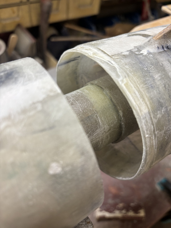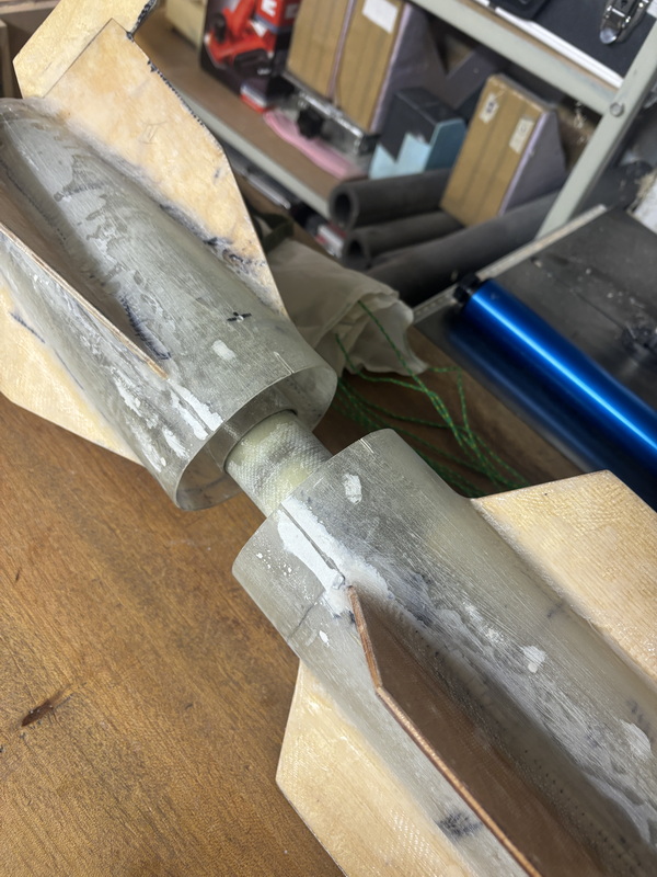 Nachdem ich ein neues 38er Motorrohr hergestellt hatte, welches auch passend in den Heckkuppler eingeklebt wurde.