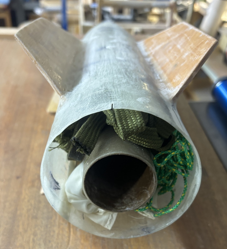 Schockband und Fallschirm werden zwischen Kupplerrohr und Außenwandung untergebracht.