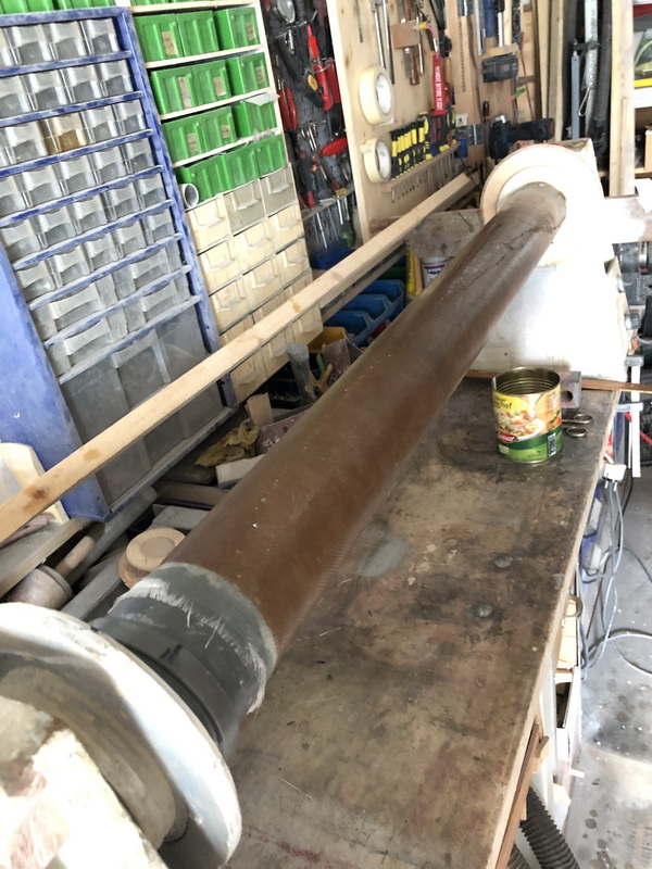 Habe wieder meine Laminierstation für GFK-Rohre aufgebaut um die Boosterrohre zu machen.