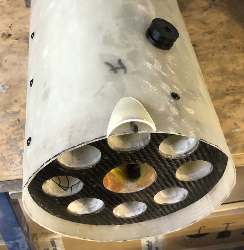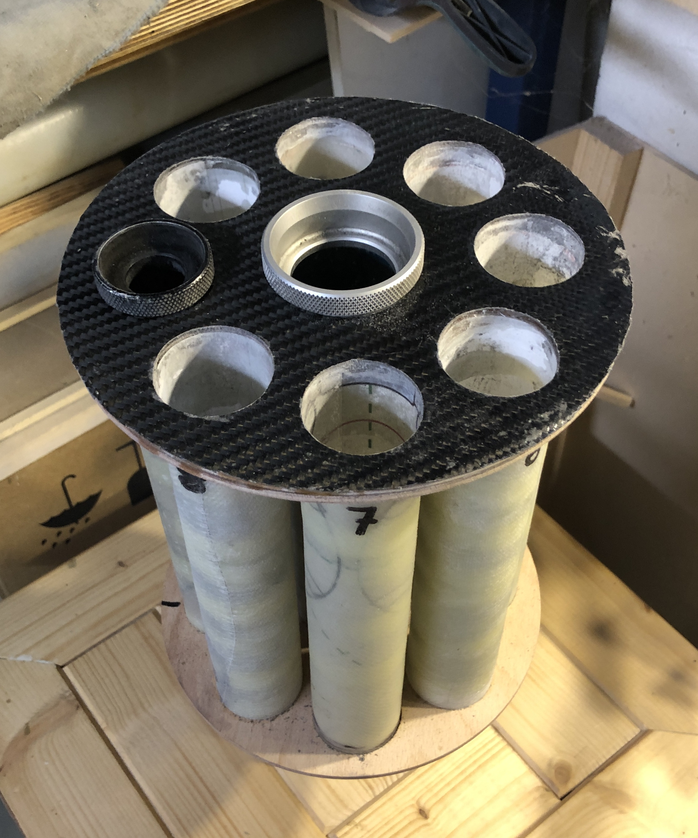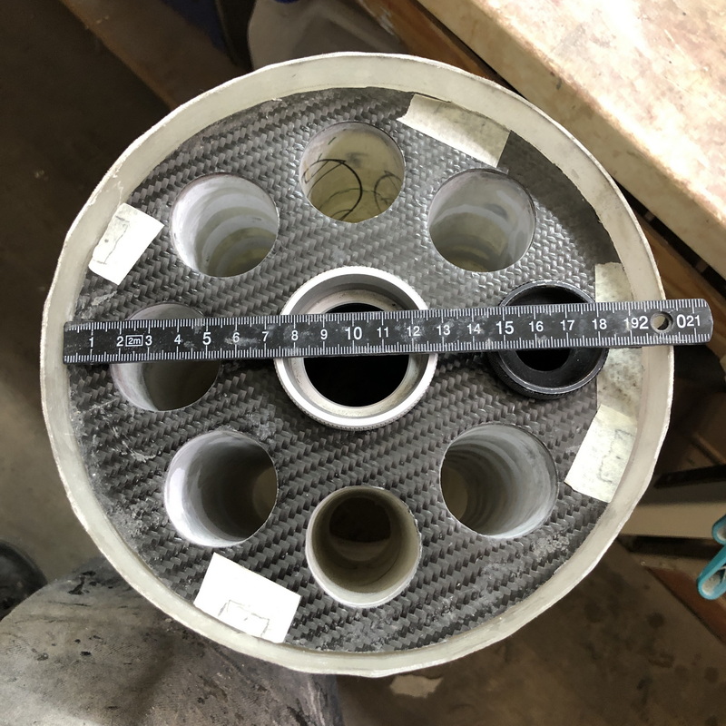 Zur Verschraubung mit dem Körperrohr habe ich erst einmal kleine Löcher gebohrt und dann den Clusterblock wieder ausgebaut.