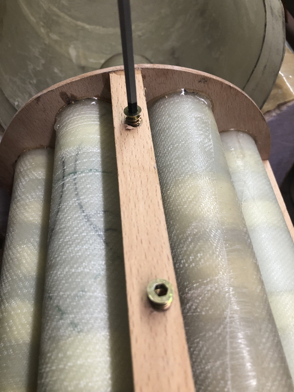 Und ich will von innen die vier großen Chime mit integrierten, durchsichtigen Acrylflügeln anschrauben. So kann man sie gegebenen Falls auswechseln.