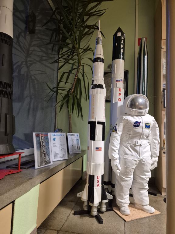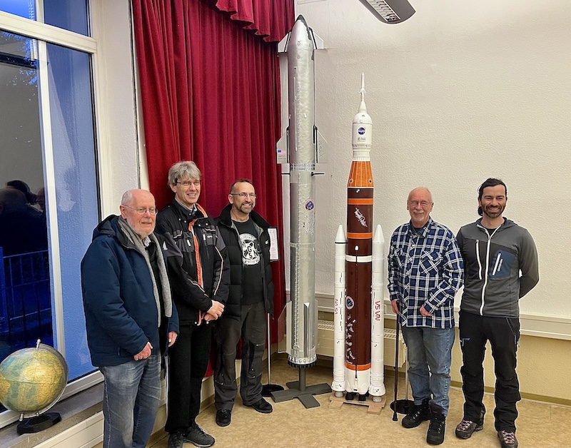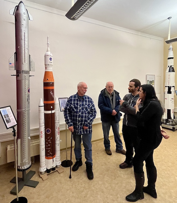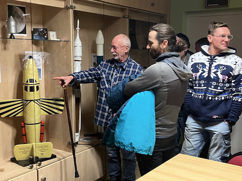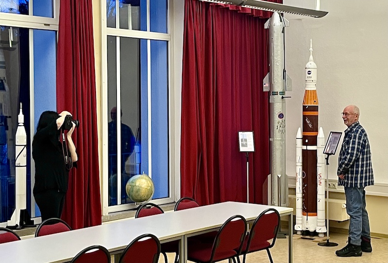 Abschließend besuchten wir das Planetarium Eilenburg. Die dortige umfangreiche und attraktive Ausstellung von Rollis Raketenmodellen wurde bestaunt und gewürdigt. Eine Pressevertreterin war zugegen! Auch alle anwesenden Mitstreiter beim Bau und bei den Starts der gewaltigen Raketenmodelle kamen auf`s Foto.
