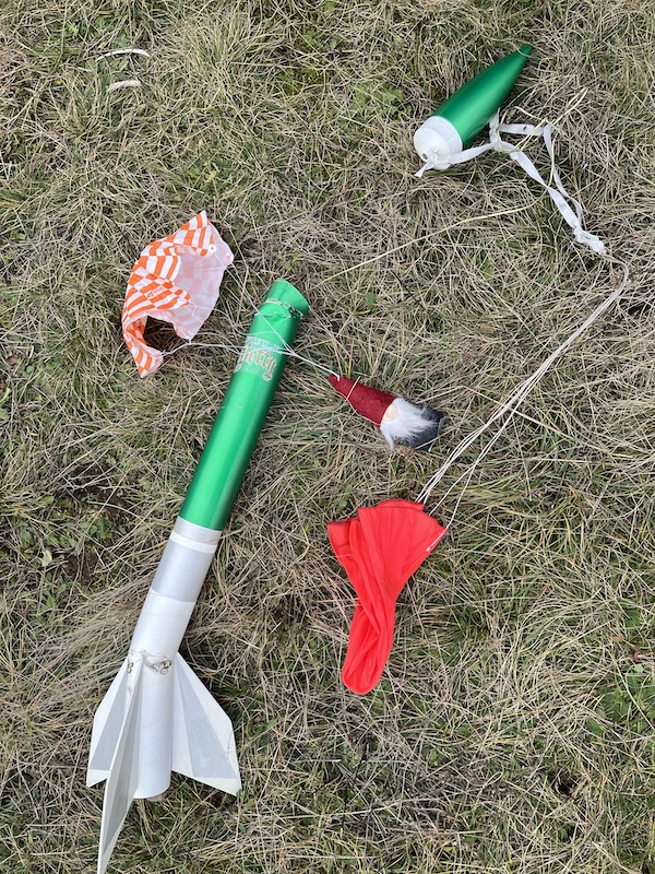 Ja, leider war der Wind in den oberen Luftschichten doch ziemlich heftig, so das die Candyman III trotz ihrer kleinen Vor und Hauptschirme( auf 120 Meter eingestellt) leider im "Raketenfressenden Wald" gelandet ist und deshalb bisher leider noch nicht geborgen werden konnte... Aber Jack, ein kleiner Trost über den Verlust des Modells sind wenigstes deine tollen Startfotos  ! Andreas
