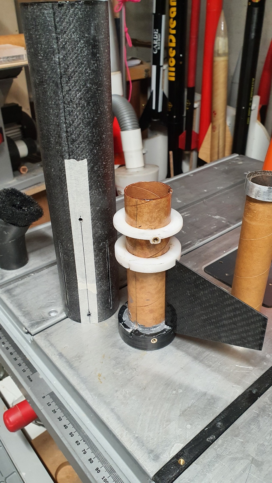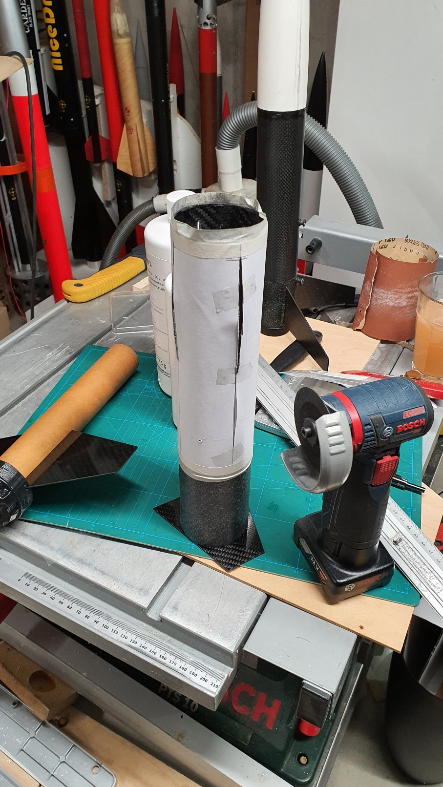 Die Flossen habe ich klassisch auf einem Papierbogen aufgeteilt und mit meiner mini Flex eingesägt