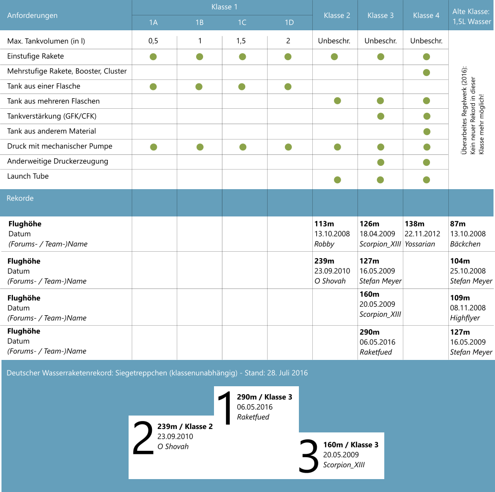 Problem 1) Ein Rekord in der alten 1,5L-Wasser-Klasse kann in Klasse 2 nur dann angerechnet werden, wenn keine Launchtube verwendet wurde (bei Verwendung der ersten Tabellenversion von Marcel).