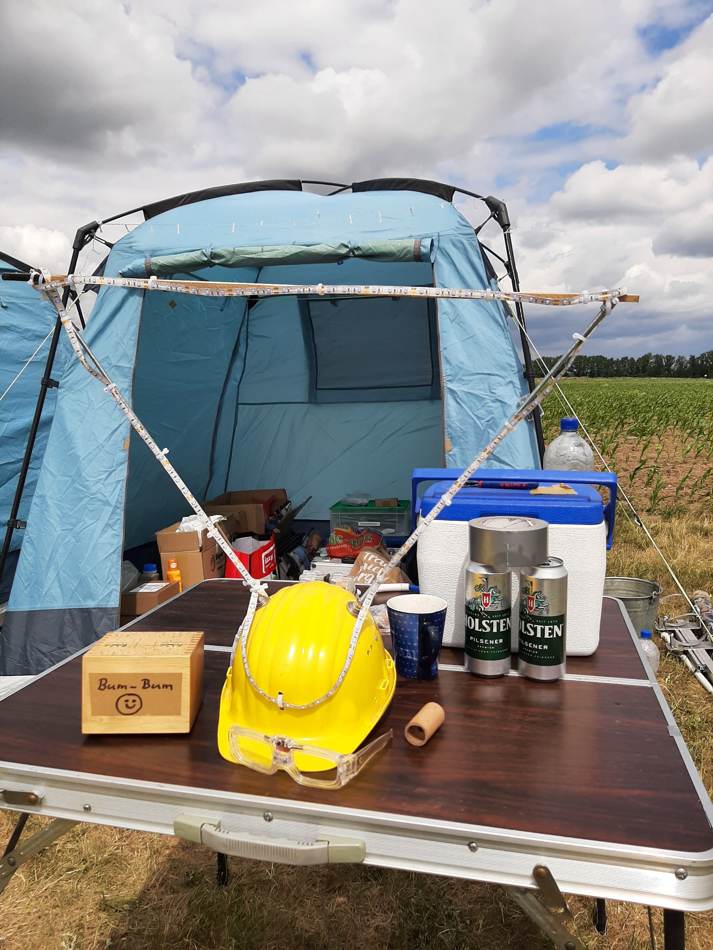 laut Beschreibung von denen, die bei dem Sturm bei ihrem Shelter waren wurde er von dem Sturm nach unten gedrückt und das Gestänge ist gebrochen. Fast bei allen, die ich gesehen habe, an der selben Stelle. Es kam echt plötzlich und es war die Tage davor immer sehr sehr windig! Ich war ja beim bergen meiner Rakete und war zunächst fasziniert von dem Sandsturm den ich sehen konnte, und habe dann mit dem Handy das Video gemacht. Bis ich anhand der Seitenwände erkannte, dass das mein Shelter sein könnte Bei meinem Shelter sind nur drei Stangen gebrochen(an den Steckverbindungen), die Plane ist voll ok  kein Riss oder so. Nur jede Menge Grasflecken auf dem Stoff und die Haken zum einhängen an den Füssen sind weg Uli