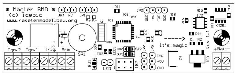 Zitat: Zu der Vorgänger Version gibt es eine Kurzanleitung, die aber nicht mehr auf dem neuesten Stand ist !! Insbesondere hatte sie weniger Anschlussmöglichkeiten. Alte Kurzanleitung: Neue Platine: JP1 - Servo Ausgang (PB1 o. PB3) wählbar über Lötjumper SJ2 JP2 - RS232 Schnittstelle TTL-Pegel zum Programmieren o. Firmware flashen mit Bootlader JP4 - Servo Ausgang o. RC-Empfänger-Eingang (PB0 ICP) JP6 - Servo Ausgang (belegt auch mit Ausgang für Zünder 1 PB4) JP7 - Servo Ausgang (belegt auch mit Ausgang für Zünder 2 PB5) LED - externe Duo LED ISP - In System Programmierschnittstelle (zum Firmware flashen) SJ1 - Lötjumper int. o. ext LEDs Uli Die Frage ob man den "neusten" PC hat, beantwortet man sich, wenn man links neben der SPACE-Taste schaut !!!! |