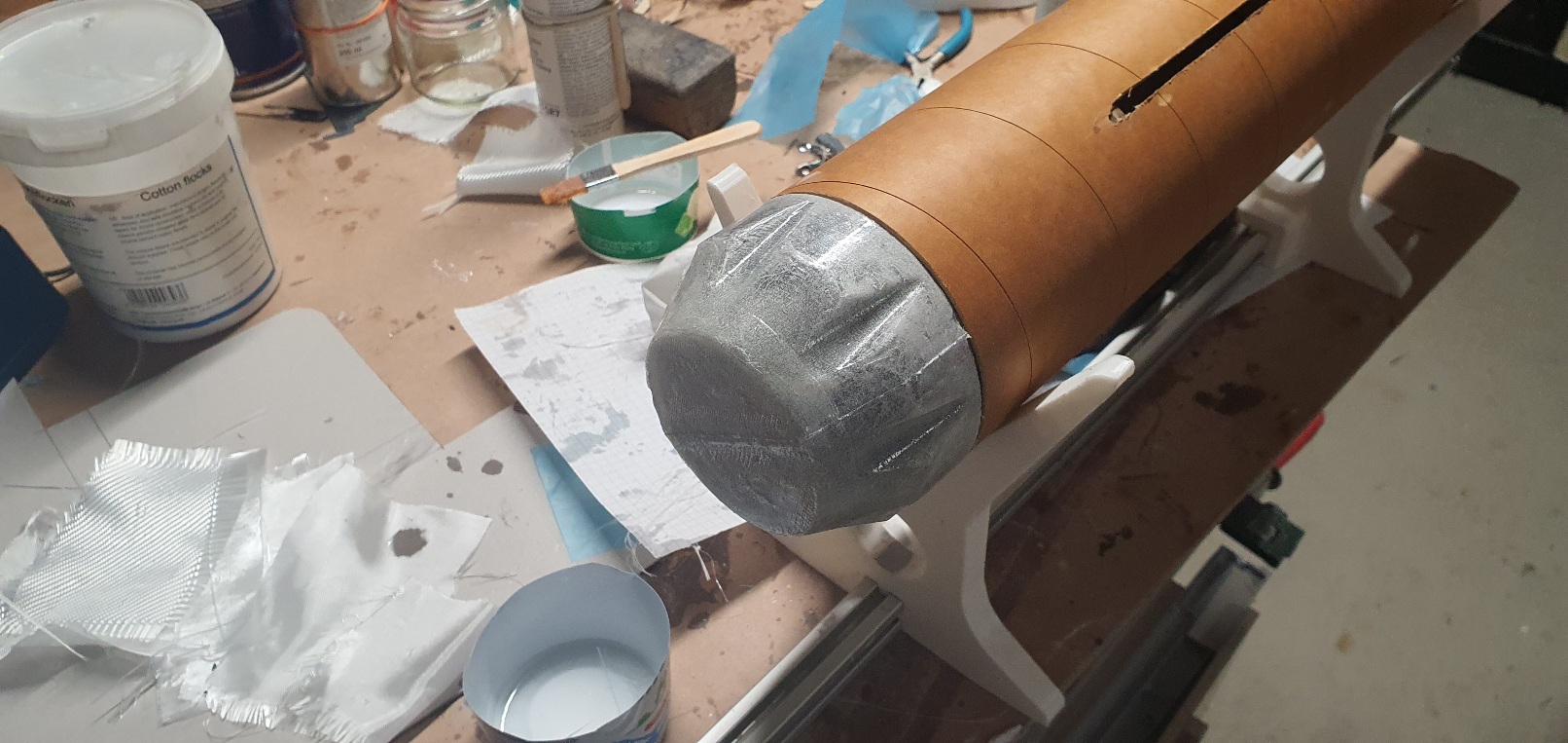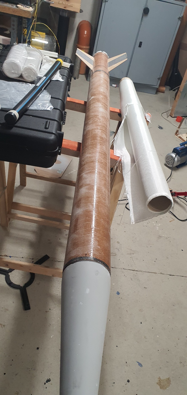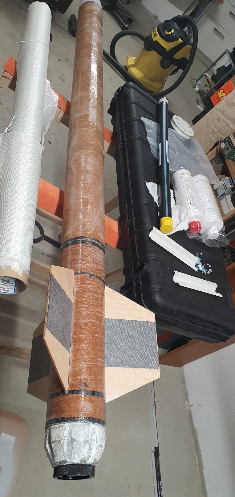 Mit dem zweiten Versuch bin ich recht zufrieden. Beim ersten hatte ich nur das dicke Gewebe eingebracht. Da hat das Vakuum nicht ausgereicht das Laminat an die Form zu pressen. Heute Abend nehme ich das komplett aus der Form, dann kann ich sagen ob es schick geworden ist. Wenn es außen gut ist, kann ich innen noch deutlich mehr Verstärkung einbringen.