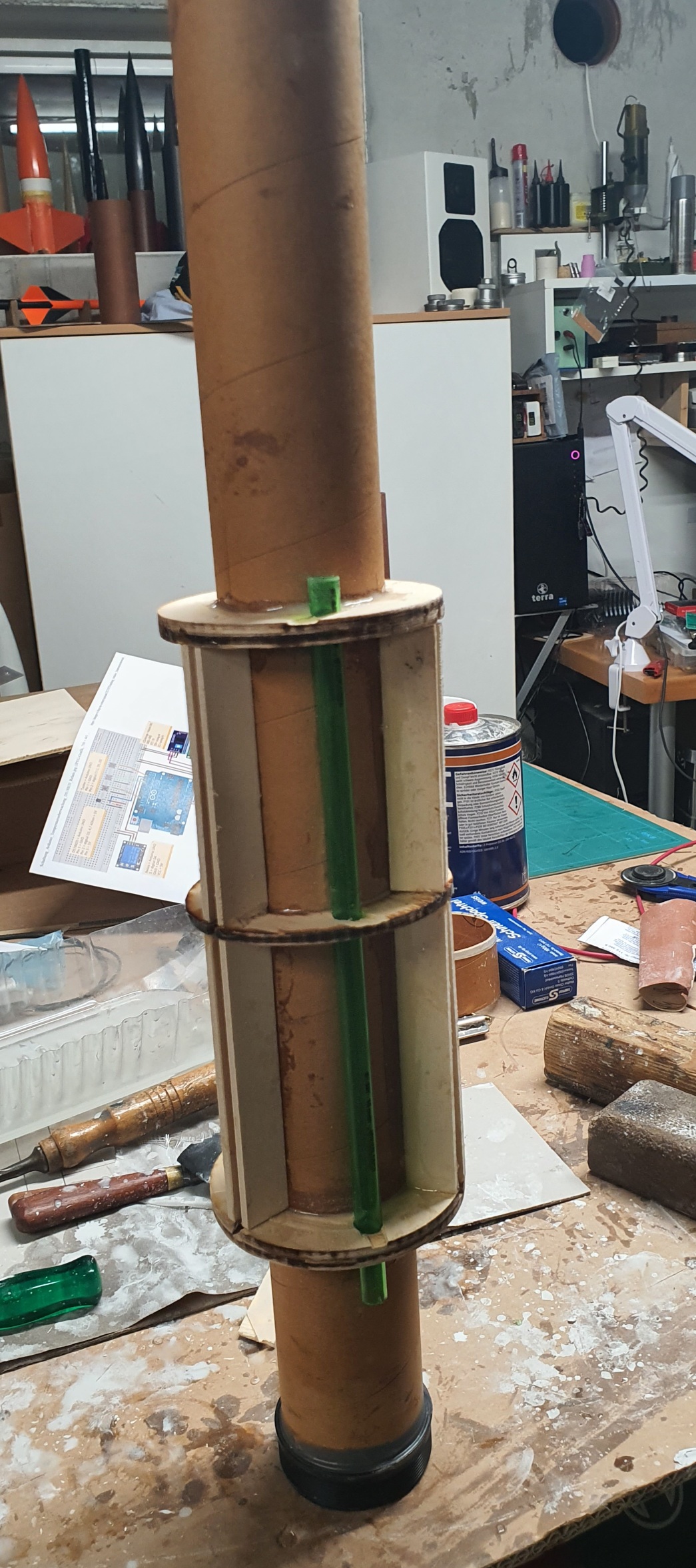 Ein Kabelkanal. Ich wollte diese Magnetkontakte im Retainer verbauen. Dann kann ich von außen ein Servoventil steuern. Beim Start fällt dann das Kabel ab.