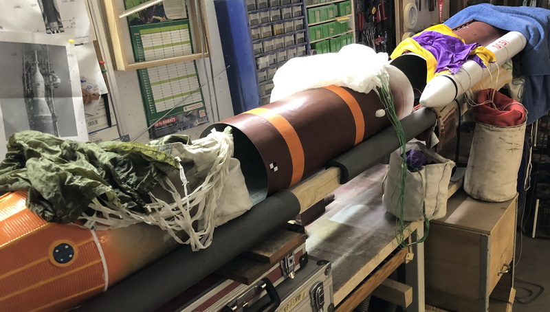 ein erster Gesamtpreppversuch nach Erstellung einer Checkliste... Auch die Fallschirme in ihren Deploymentbags und ihren Pilotschirmen sind gescheckt worden.
