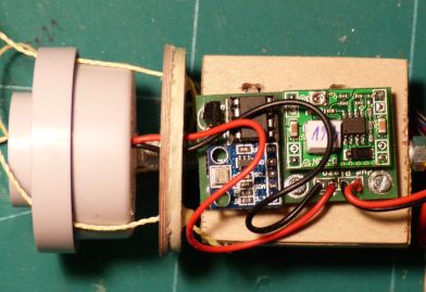 Ich habe mir einen "Sound Locator" gebaut. Die Spitze ist nur lose aufgesetzt, soll beim Öffnen des Fallschirms abfallen und den Summer freigeben. Der Summer ist ein Hochleistungs-Piezo-Summer von Ekulit, der bei 12 V einen Schalldruck von 100 db(a) erzeugen soll.