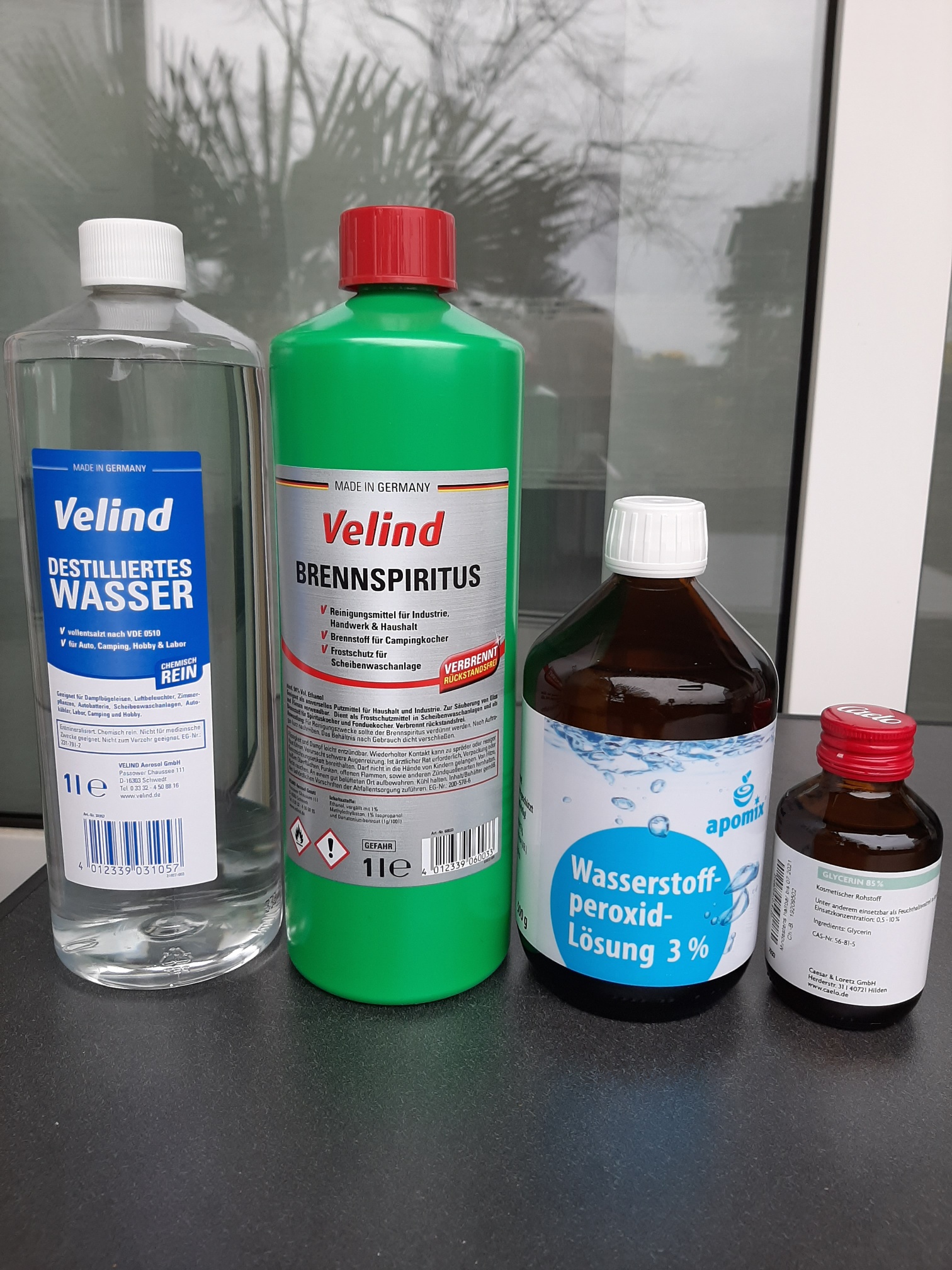 Ich habe heute (20.03.2020 17:00 Uhr) noch problemlos die von der WHO empfohlenen Grundstoffe zur eigenen Herstellung eines wirksamen Desinfektionsmittels in unserer Apotheke und Drogerie kaufen können...