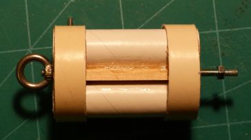 Zum Bau habe ich zwei Rohrstücke abgeschnitten, die zunächst alles in Position zusammenhalten und verschieblich sind. Damit konnte ich sehr schön das 5-min Epoxy verteilen. Als Zwischenraum eigneten sich Stücke von einer Holzleiste mit 5 mm * 15 mm recht gut: