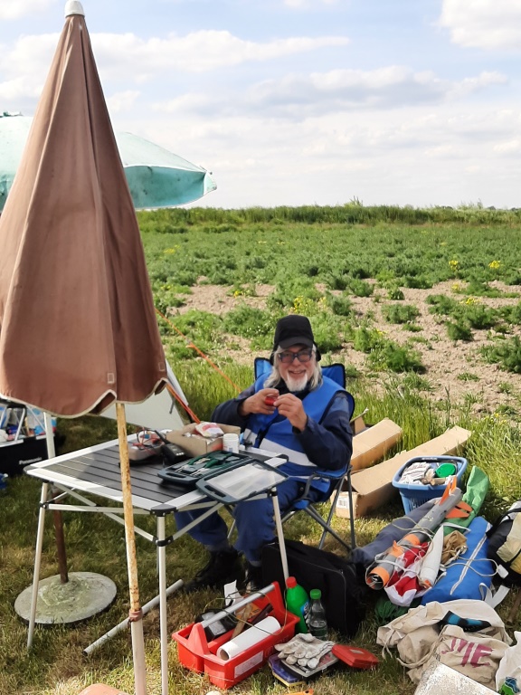 Hybridfliegerrunde, fachsimpeln... Mathias ist extra für den RJD aus seiner neuen Heimat Australien angereist... Hagen dieses Jahr im sturmsicheren Zelt... unser Schatzmeister Jürgen, Alex mit seinem "Arbeitspferd"...;-)